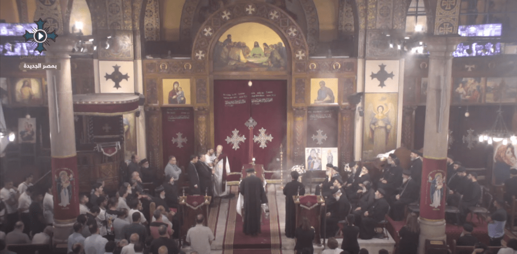 صلاة الجنازة على روح المتنيح طيب الذِكر الدكتور سعيد حكيم يعقوب، في كنيسة مارمرقس بكليوباترا، بحضور لفيف من الآباء الأساقفة والكهنة والشمامسة، وأساتذة الكلية الإكليريكية.