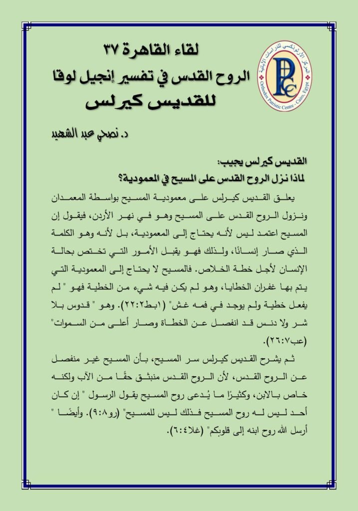 القديس كيرلس وتفسيره للأمثال (بإنجيل لوقا)- د. جورج ميشيل – لقاء القاهرة 37 سنة 2007